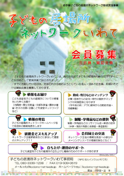 子どもの居場所ネットワークいわての会員・賛助会員を募集しています!