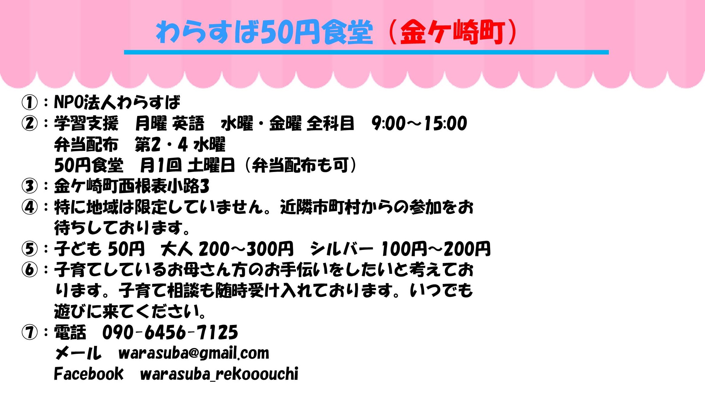 メール warasuba@gmail.com WEB Facebook