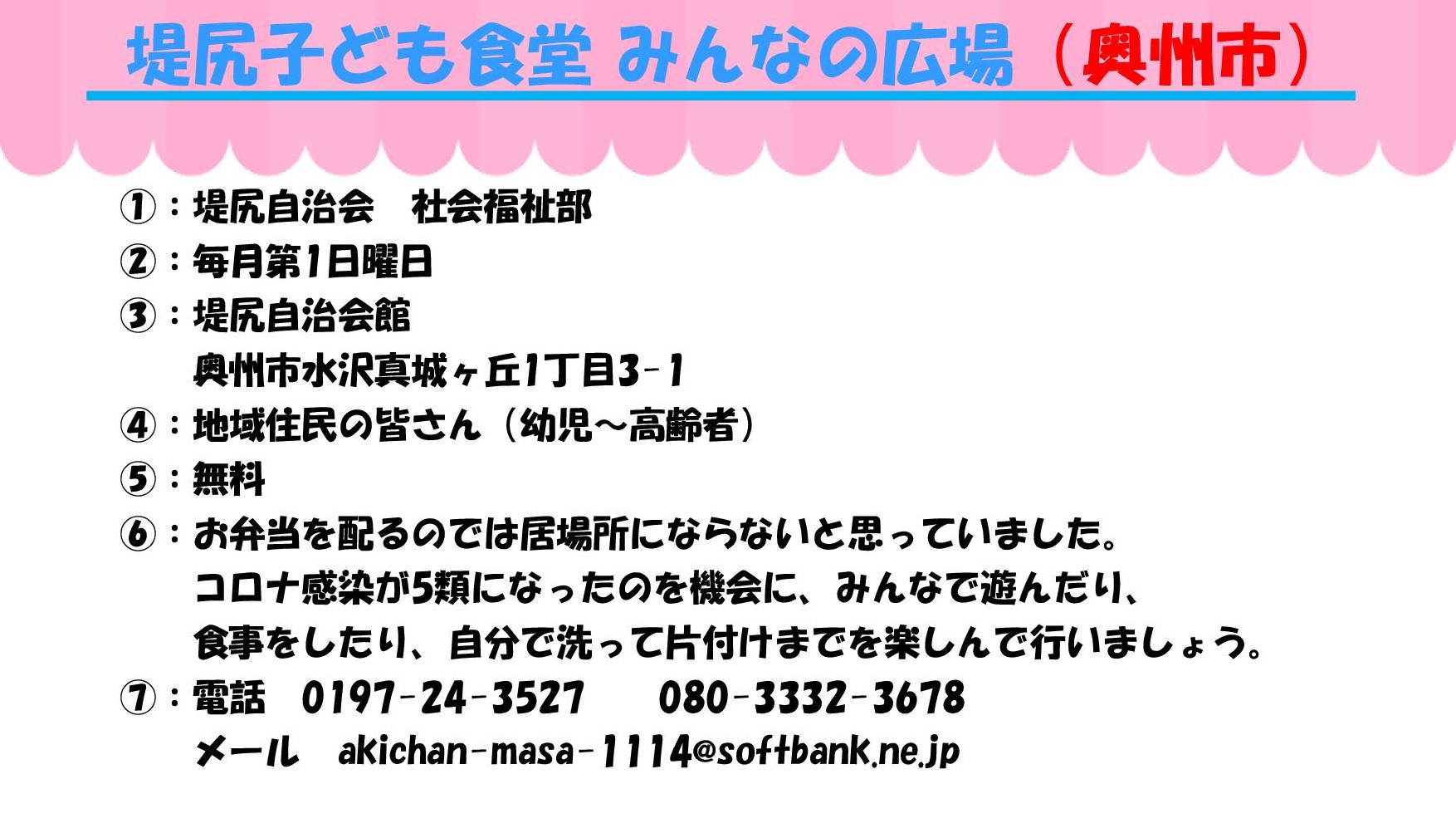 ★堤尻子ども食堂 みんなの広場(水沢真城ヶ丘)