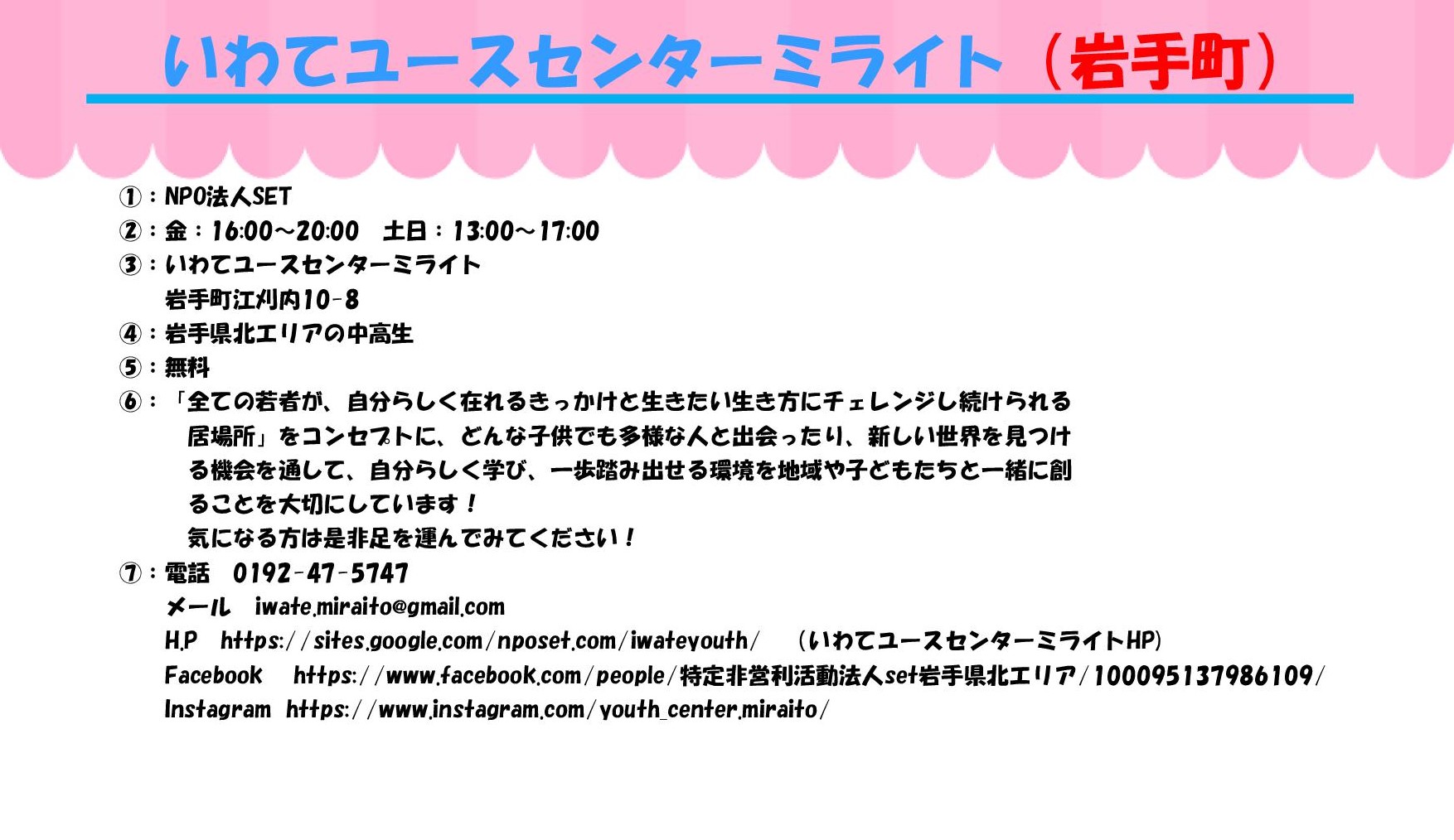 メール iwate.miraito@gmail.com WEB Facebook Instagram
