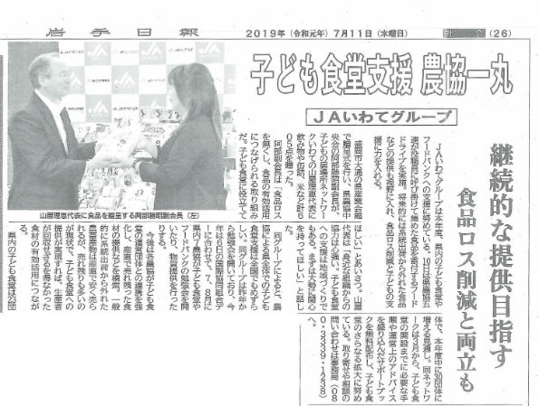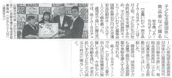 いわてJA-SSチェーン様より、ご寄付をいただきました