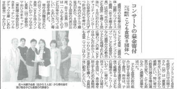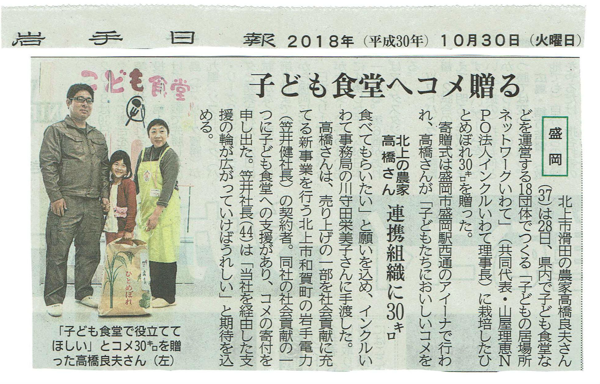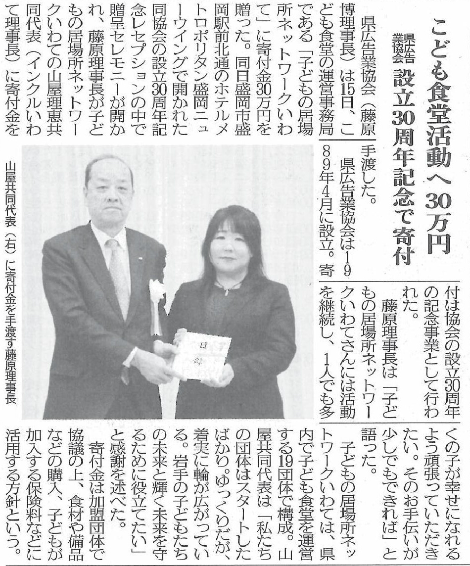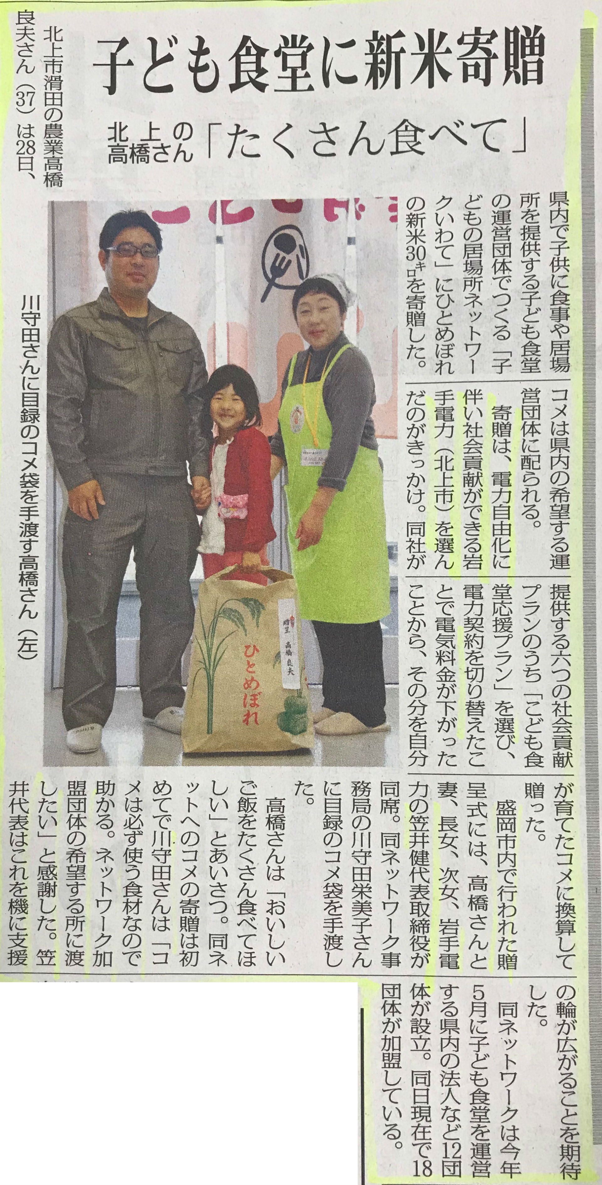 あかり食堂(一関市大東町)、むらさきの子ども食堂(北上市村崎野)、カシオペア”おいでよ”(二戸市)が新規加入されました。