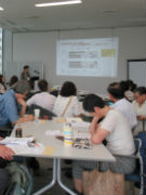 ワークの始まりは緊張をほぐすアイスブレイク。背中にシークレットの単語(かえる・目玉焼き・消しゴム等)を貼り、それを探るために1人1問の質問を繰り返して解明するゲームで和やかな雰囲気になりました。
