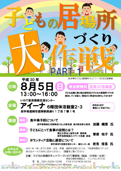 お申込み・お問い合わせ…子どもの居場所ネットワークいわて事務局(担当:川守田)